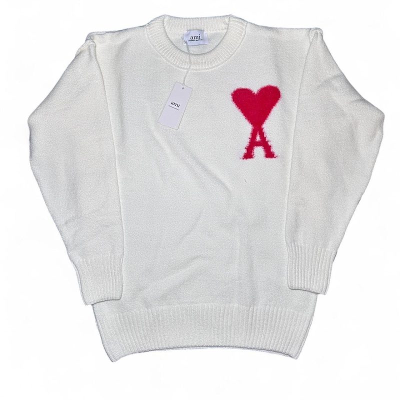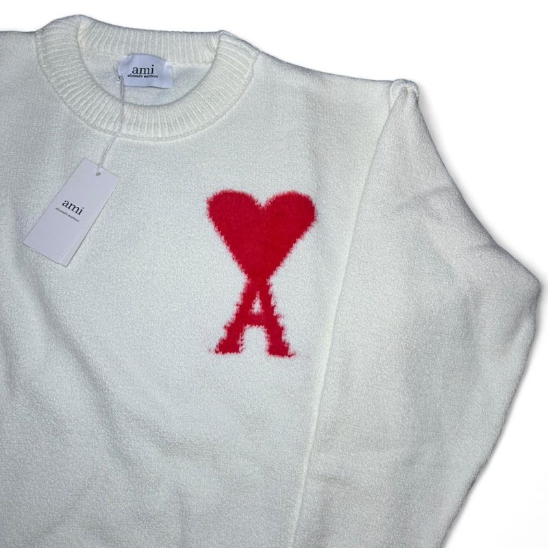 #AMIParis #MensJumper #CreamAndRedJumper #LuxuryKnitwear #ParisianStyle #AMIStyle #EffortlessChic #MinimalFashion #ModernDesign #Vintage