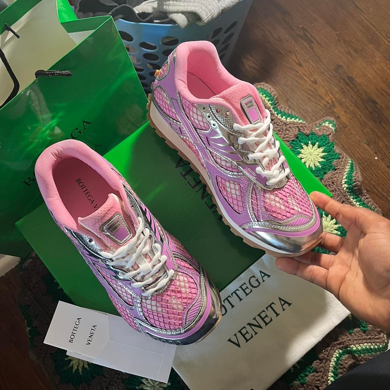 Be the first to review “Bottega Veneta Women’s Pink and Silver Trainers” Cancel reply