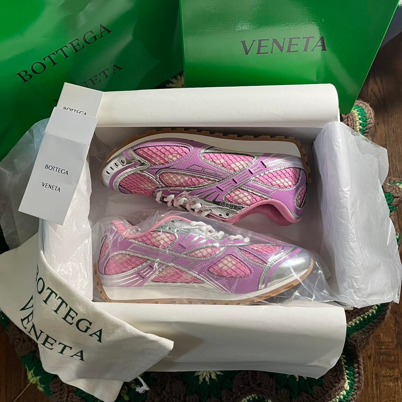 Bottega Veneta Women’s Pink and Silver Trainers