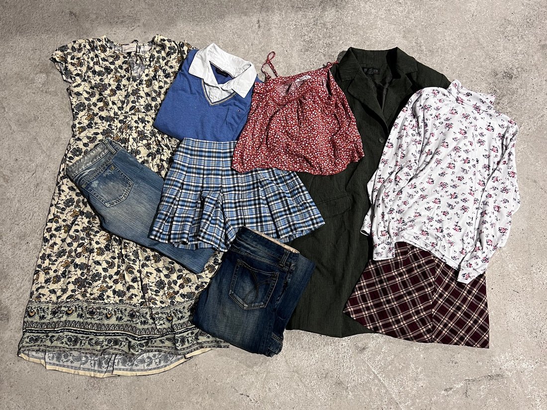 This kilo deal contains a Ladies mix with all the categories we have for Ladies. You will mostly find skirts, tops, jeans, jackets, sweaters, coats, trench coats, pants, dresses, and vests in this mix. The items are mostly unbranded, but you may also find some branded items as when we find them we will also add them to this kilo deal.
