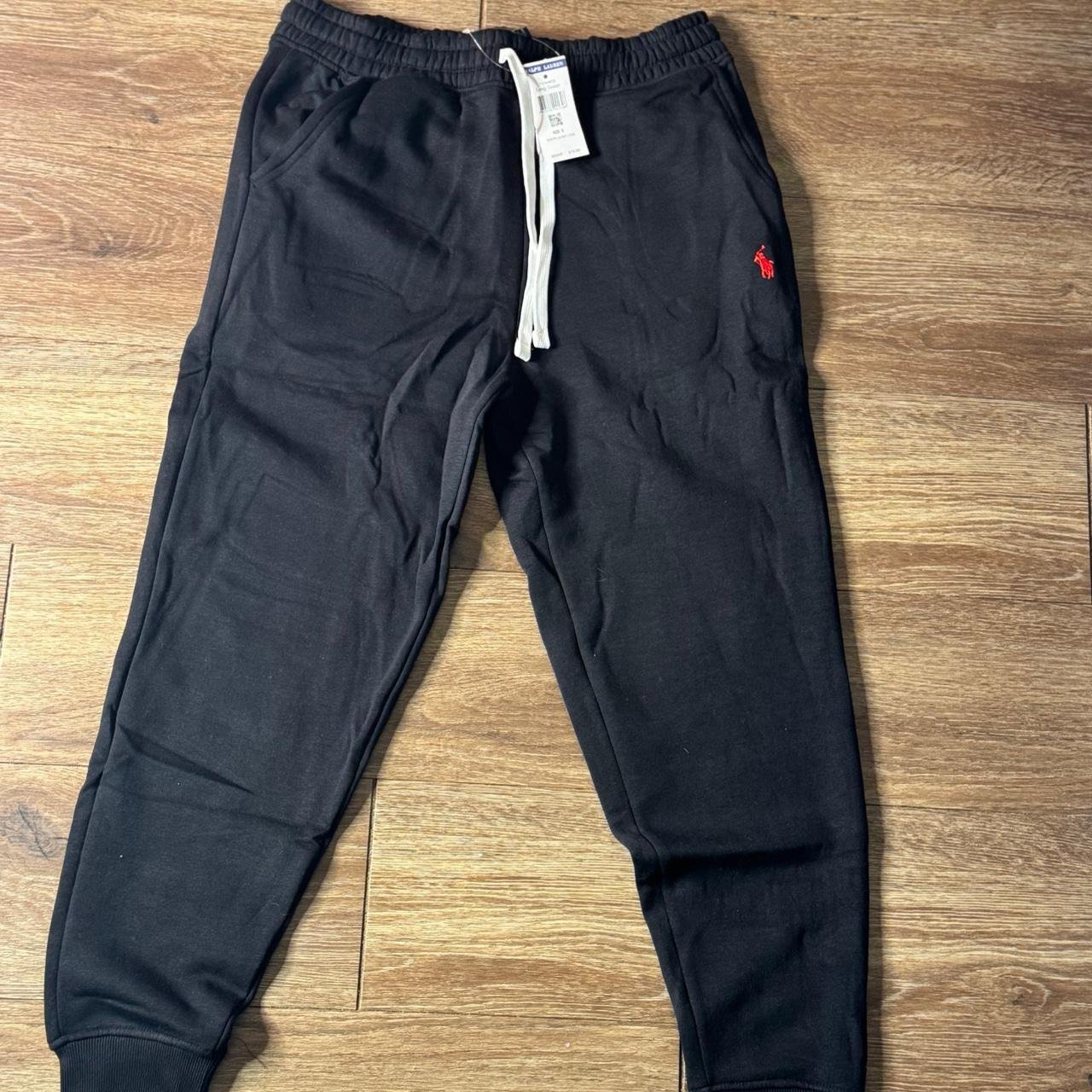 Men’s black and red polo with white strings Comes new with tags